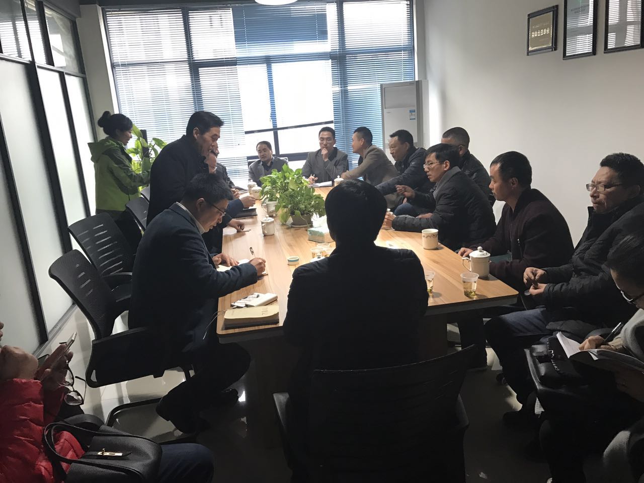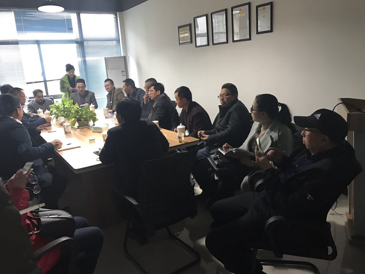 2017年3月15日,麗水畜牧局相關領導一行來我司,考察指導養殖業污水治理第三方監管工作,區畜牧局領導和公司總經理范江紅親切接見,并詳細介紹我區生豬養殖污染治理方案,治理的成果及寶貴經驗。現場通過電視墻了解養殖場污水處理情況。