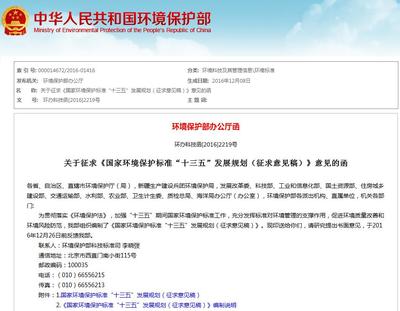 環保部近日印發《國家環境保護標準“十三五”發展規劃》。根據規劃,“十三五”期間,環境保護部將全力推動約900項環保標準制修訂工作。同時,將發布約800項環保標準,包括質量標準和污染物排放(控制)標準約100項,環境監測類標準約400項,環境基礎類標準和管理規范類標準約300項,支持環境管理重點工作。 未來,究竟哪些環保標準會有改動呢? 小編化身數據帝~ 為您一一道來 截至“十二五”末期: 累計發布國家環保標準1941項(其中“十二五”期間發布493項),廢止標準244項,現行標準1697項。在現行環保標準中,環境質量標準16項,污染物排放(控制)標準161項,環境監測類標準1001項,管理規范類標準481項,環境基礎類標準38項。 未來—— 水土氣環境質量標準都有了制定計劃 土壤方面:將以保護人體健康和生態環境為目標,以風險評估為手段,進一步完善有毒有害物質控制指標,系統構建土壤環境質量保護標準體系。貫徹落實《土十條》要求,2017年底前發布農用地、建設用地土壤環境質量標準。 水環境方面:結合我國流域環境特征及最新科研成果,修訂地表水環境質量標準,提高各功能水體與相應水質要求的對應性,明確環境質量保護目標,加強環境風險防范。修訂海水水質標準,發布近岸海域生態環境質量評價規范,科學反映水環境質量現狀及變化趨勢。 環境空氣質量及噪聲控制方面: 將跟蹤評估2012年版《環境空氣質量標準》實施情況,修訂乘用車內空氣質量評價指南。 跟蹤2008年版《聲環境質量標準》實施情況;修訂機場周圍飛機噪聲環境標準,確定合理的機場噪聲評價指標和控制水平,強化對機場周圍區域環境噪聲管理與規劃控制。 修訂城市區域環境振動標準,擴大標準適用區域,采用國際最新計權曲線,客觀反映環境振動對人體健康的影響。 污染物排放標準對改善環境質量、防范環境風險有極為重要的意義,水、大氣以及固體廢物標準制定修訂工作,都將貫徹落實相應的污染防治行動計劃要求,圍繞重點領域,優先制定相關污染物排放及控制標準。 (來源:人民日報) |
