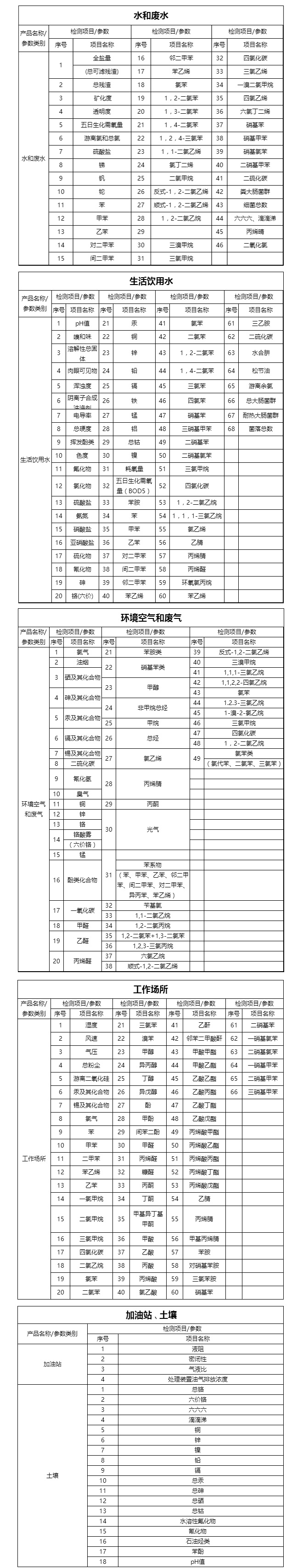 環境檢測項目:養殖污水檢測、工業污水檢測、生活污水檢測,土壤污染檢測,大氣檢測,噪聲檢測,農產品安全檢測;
